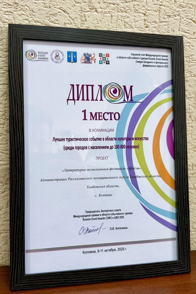 В городе Коломна подвели итоги окружного этапа Северо-Западного и Центрального федеральных округов Международной премии в области событийного туризма Russian Event Awards (18+). Литературно-музыкальный фестиваль имени Сергея Николаевича Сергеева-Ценского, который ежегодно проходит в селе Коптево Рассказовского округа, стал победителем.