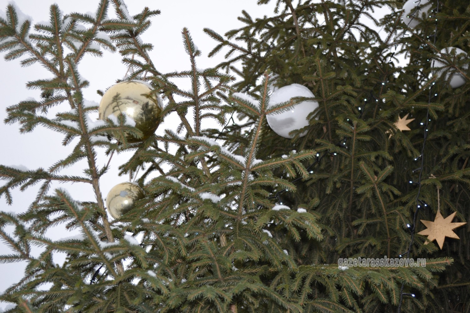 Есть на главной красавице рождественские звёзды, изготовленные рассказовкими мастерами в эко-стиле, золотые и белые шары, искрящиеся под лучами декабрьского солнца. В сумерках, когда зажигаются светодиодные гирлянды, вся площадь особенно красива и волшебна.
