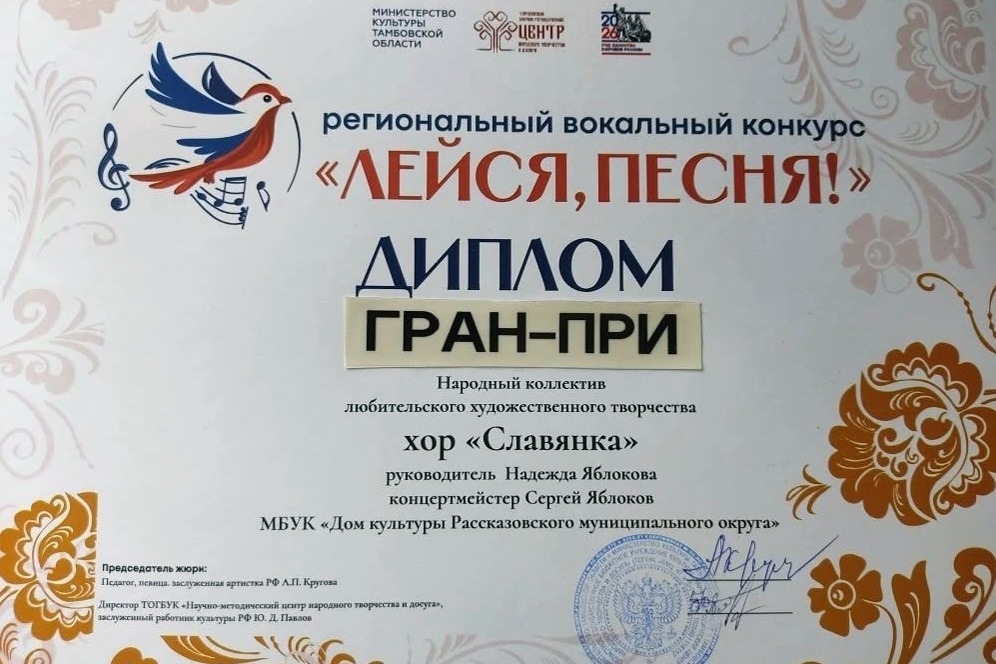 Коллектив Дома культуры Рассказовского муниципального округа «Славянка» стал обладателей Гран‑при!