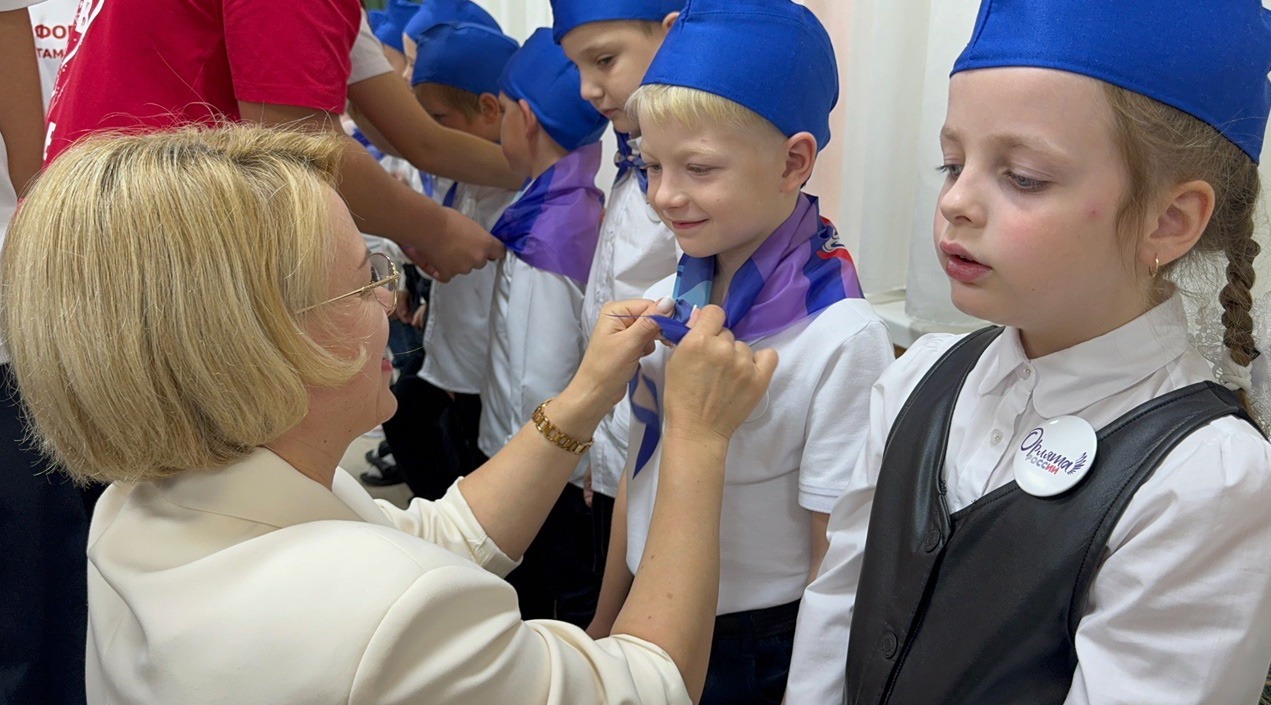 Вместе с активистами Рассказовского отделения Движение Первых глава города Вера Соколова повязала дошкольникам галстуки, официально приняв их в ряды всероссийского движения.