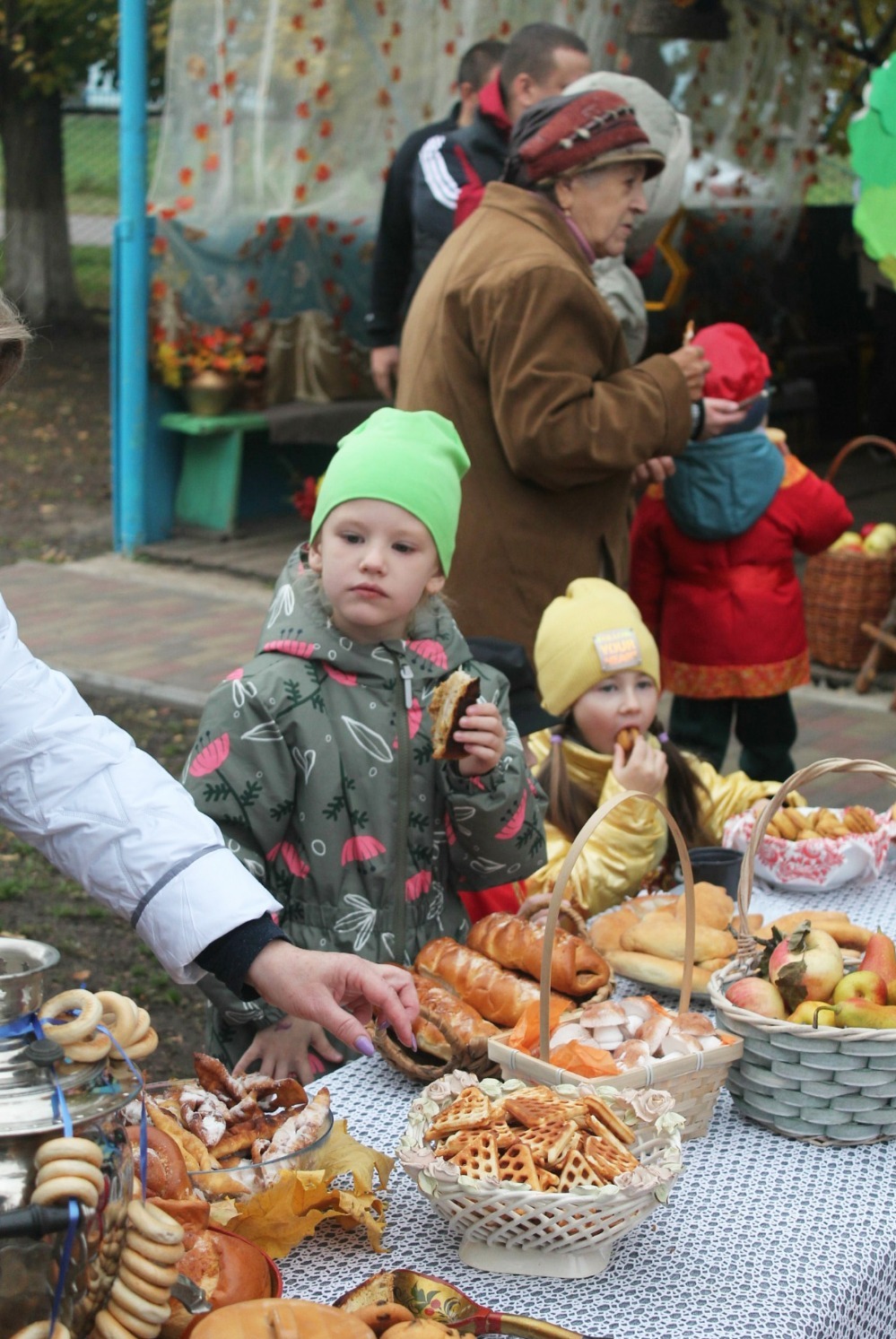 С самого утра на территории дошкольного учреждения было многолюдно и весело. Гостей встречали щедрые дары осени: спелые яблоки и тыквы, букеты душистых трав. Заботливые родители приготовили угощенья — столы буквально ломились от разнообразных яств. Неподалёку устроили выставку поделок, изготовленных руками детей из природных материалов, овощей и фруктов.