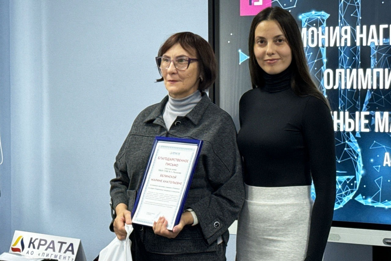 Благодарственным письмом от организаторов отметили наставника победителя, учителя химии школы № 3 Марину Белинскую.