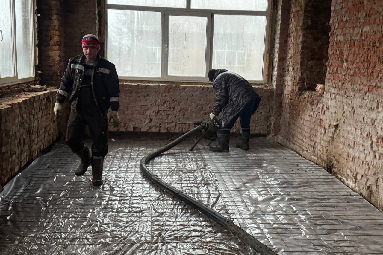Помещения подготовили к установке дверей. Завезли радиаторы системы отопления. Их монтаж планируют начать в понедельник.