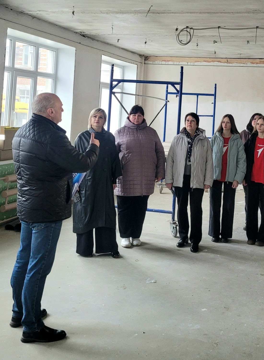 Директор Платоновской школы Михаил Филонов подробно рассказал о том, как продвигаются работы. Присутствующие смогли оценить, что уже сделано и что предстоит.