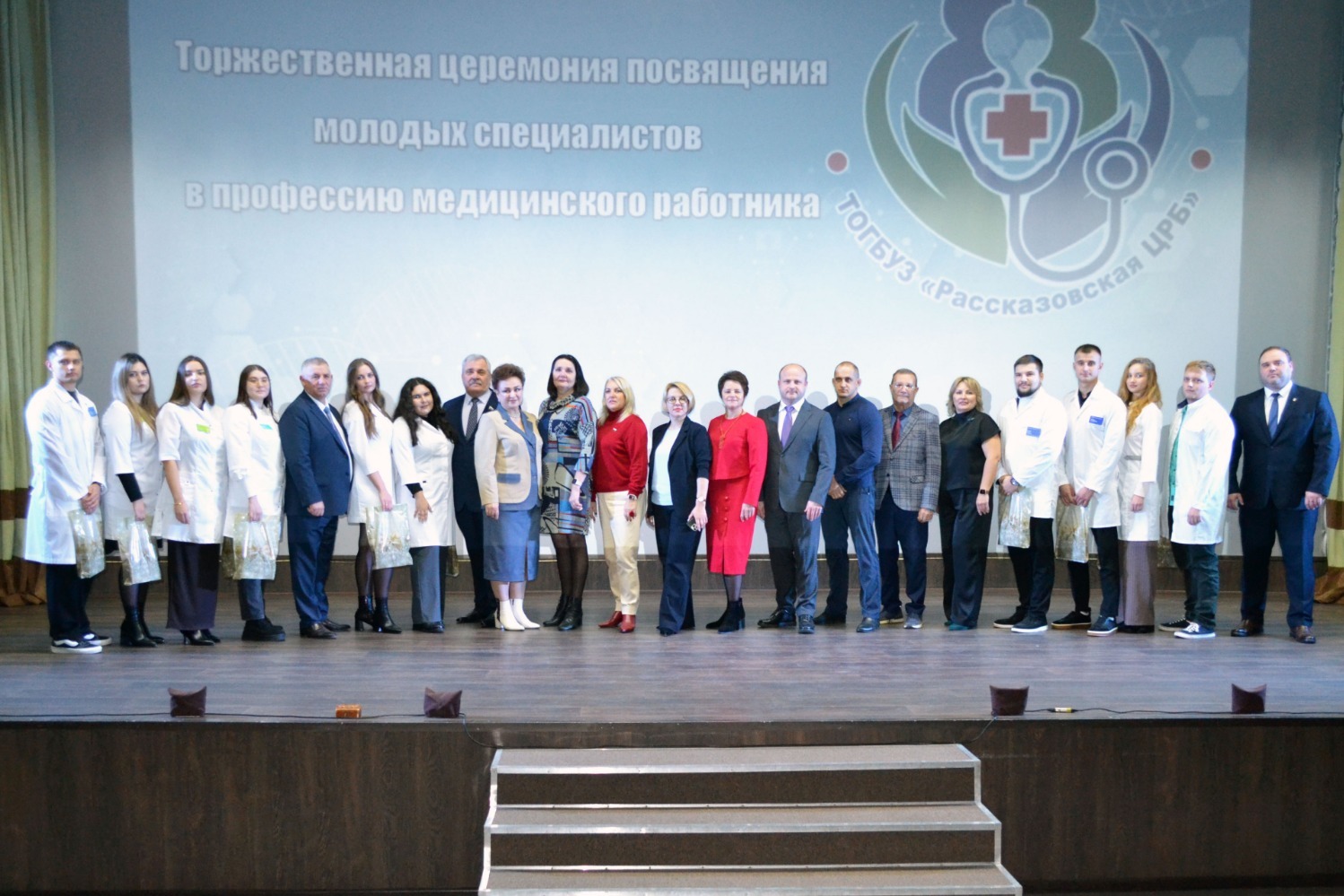 В городе Рассказово прошло традиционное торжество — посвящение молодых специалистов в профессию медицинского работника. Рассказовская ЦРБ приняла в свой коллектив десять новых сотрудников: педиатров, хирурга, стоматолога, терапевта, инструктора по лечебной физкультуре, медсестру и медбрата.