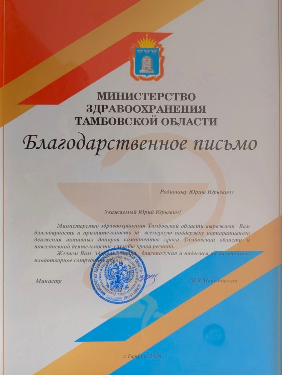 В 2025 году звания «Почётный донор России» удостоены 100 жителей Тамбовской области. Всего в регионе награда вручена 2475 жителям. В городе Рассказово и Рассказовском округе проживают 265 доноров.