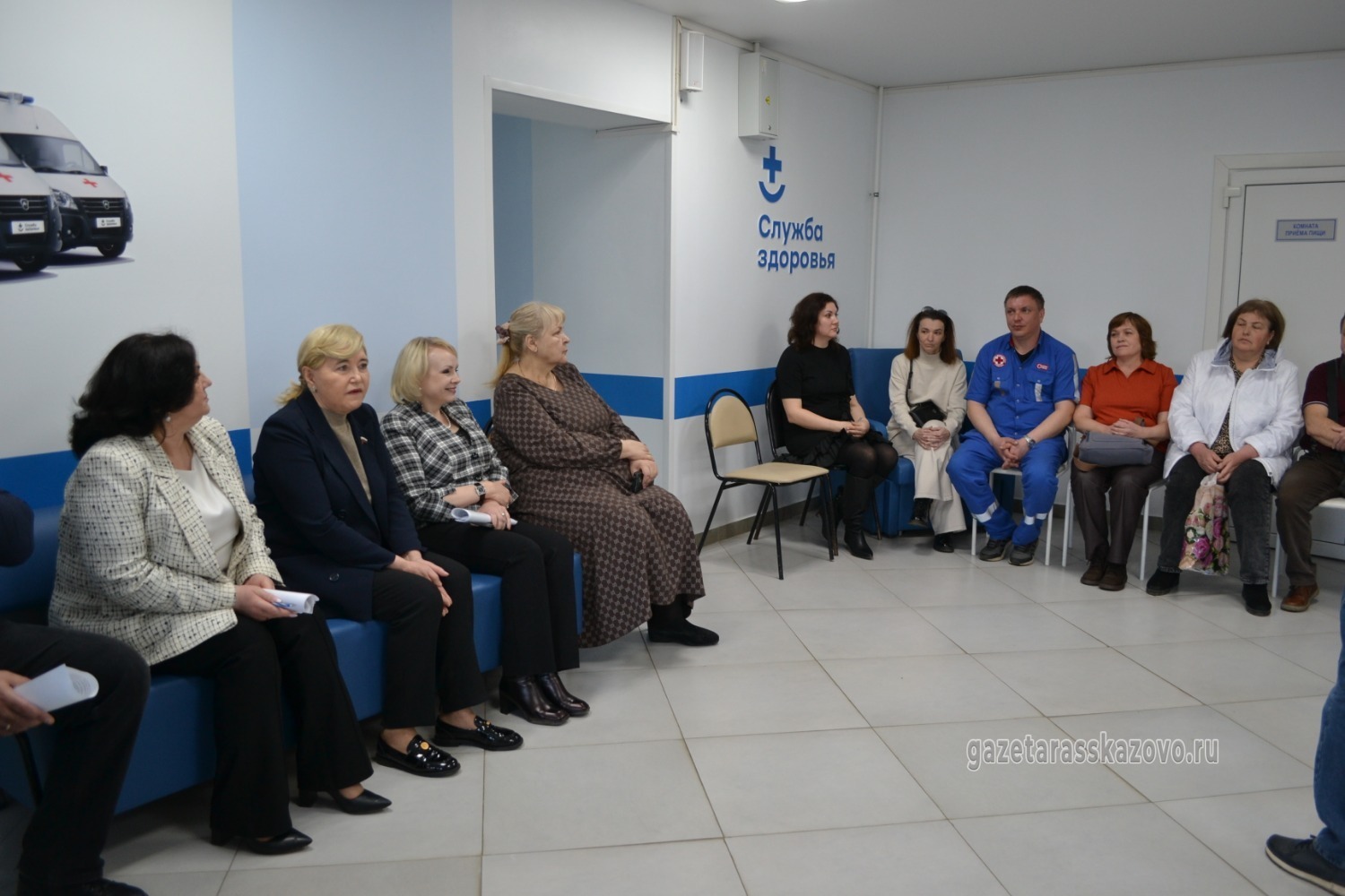 Вместе с главным врачом Рассказовской ЦРБ Надеждой Семьяниновой, заместителем главы города Ольгой Горелкиной члены рабочей группы пообщались с коллективом подстанции, обсудили вопросы оплаты труда.