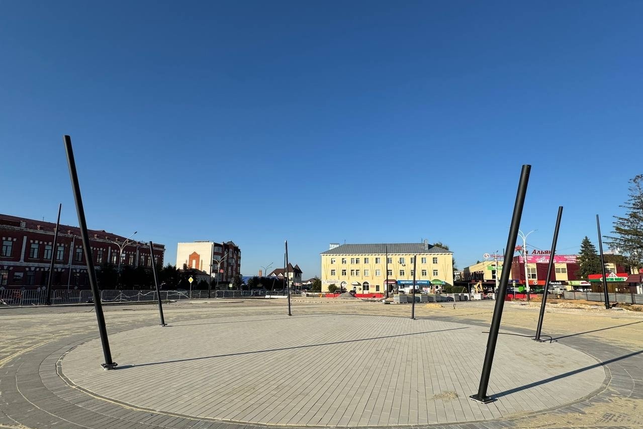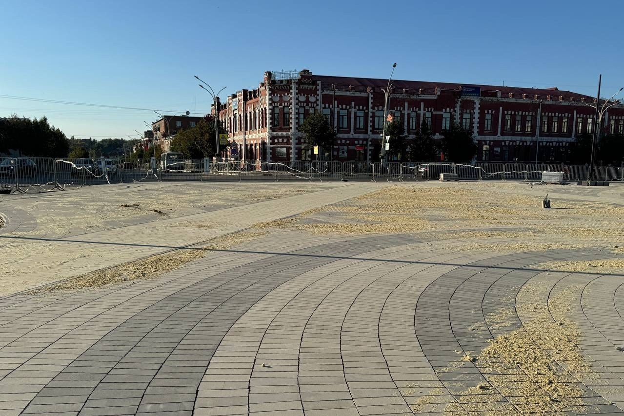 Подрядчики выполнили значительный объём работ. Плиткой выложили 80 процентов самой площади и треть от запланированного в сквере. Смонтировали почти все бордюры, проложили 70 процентов подземных сетей для освещения и установили половину опор для современных светильников.
