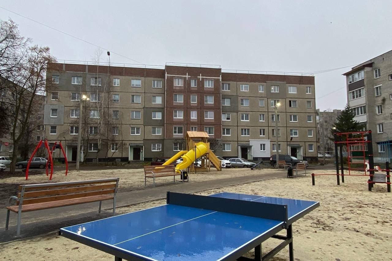 Во дворах многоэтажных домов оборудовали освещение, установили детские игровые комплексы и турники, столы для настольного тенниса, лавочки и урны, проложили пешеходные дорожки, провели озеленение. Здесь заасфальтировали и расширили парковки.