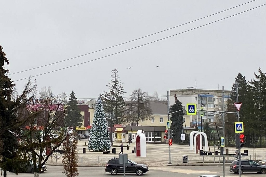 Перед Новым годом на центральной площади радует рассказовцев и новая ель.
