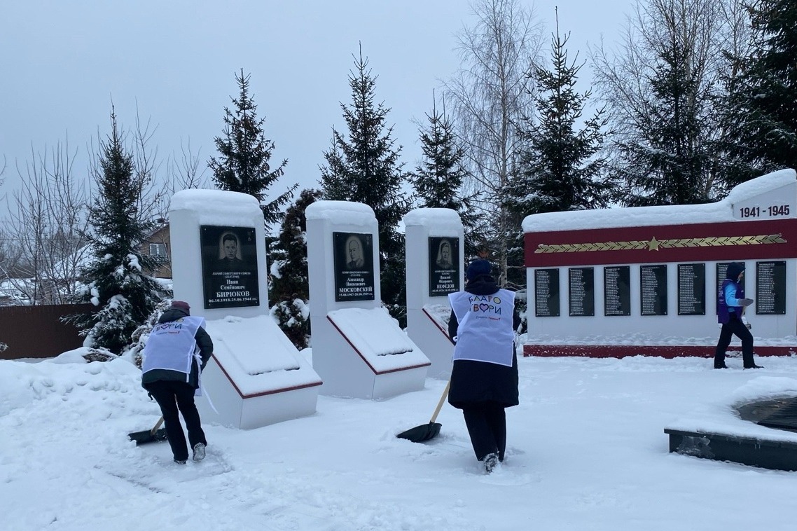Уже дважды выходили на расчистку снега волонтёры Дома детского творчества. Они привели в порядок территории у памятников участникам Великой Отечественной войны в сёлах. Несмотря на погодные условия, трудились с энтузиазмом, понимая значимость своей миссии.