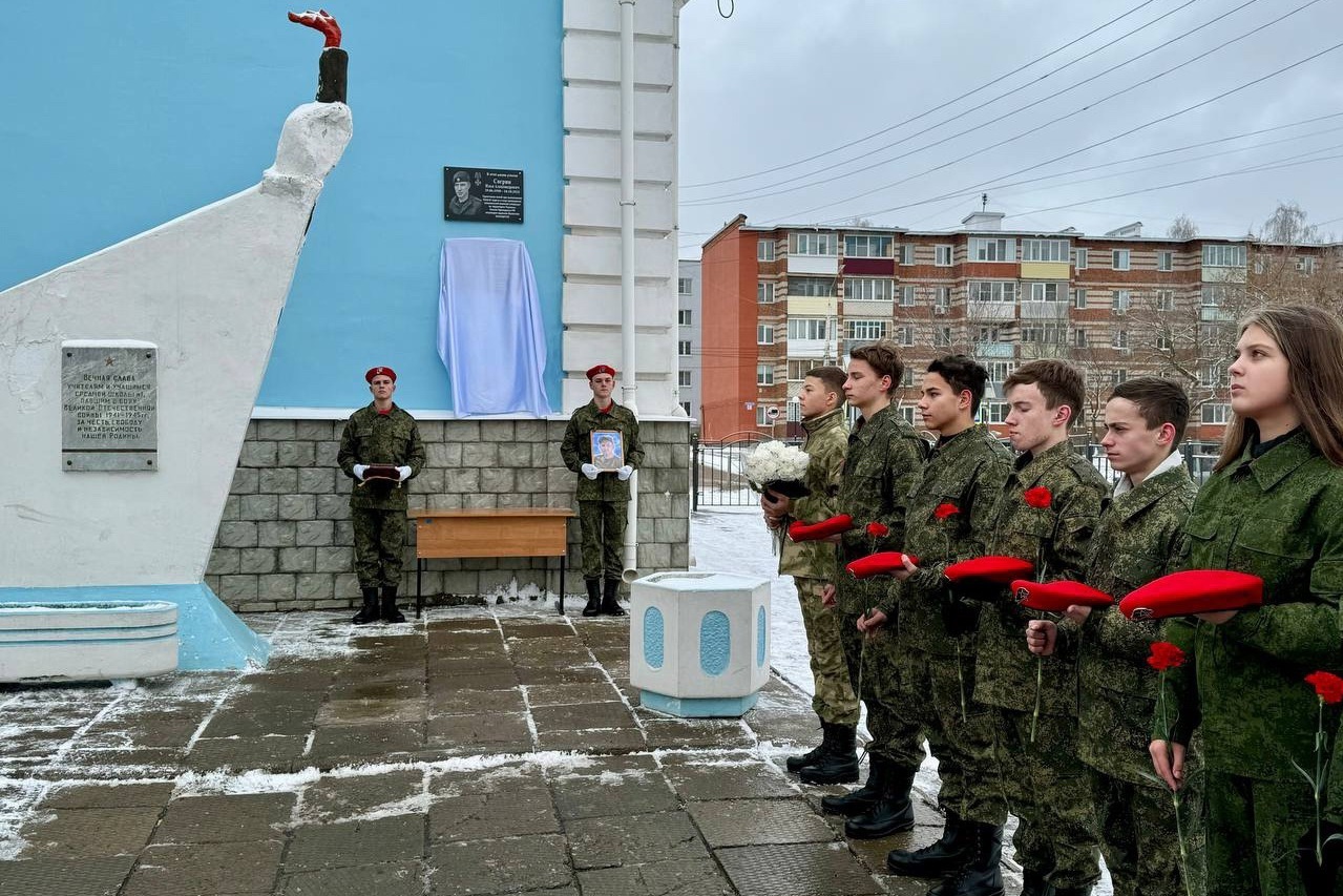 На здании первого корпуса школы № 4 города Рассказово открыли мемориальную доску в честь участника специальной военной операции Сергея Прокофьева, погибшего при исполнении воинского долга.