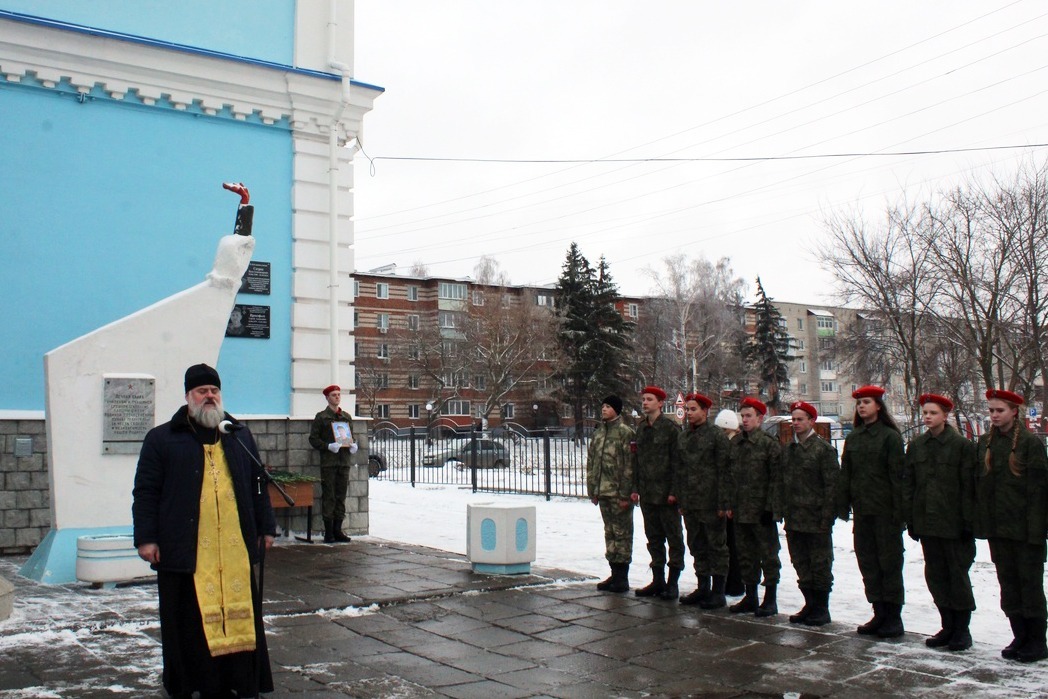 Мемориальную доску освятил настоятель Иоанно-Богословского храма протоиерей Георгий Золотов.