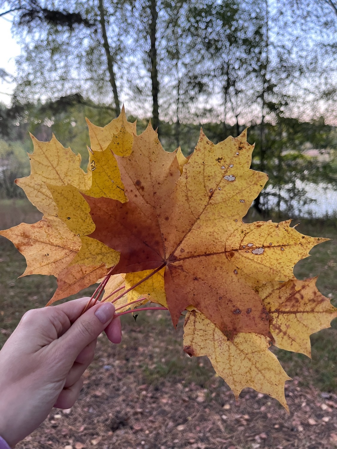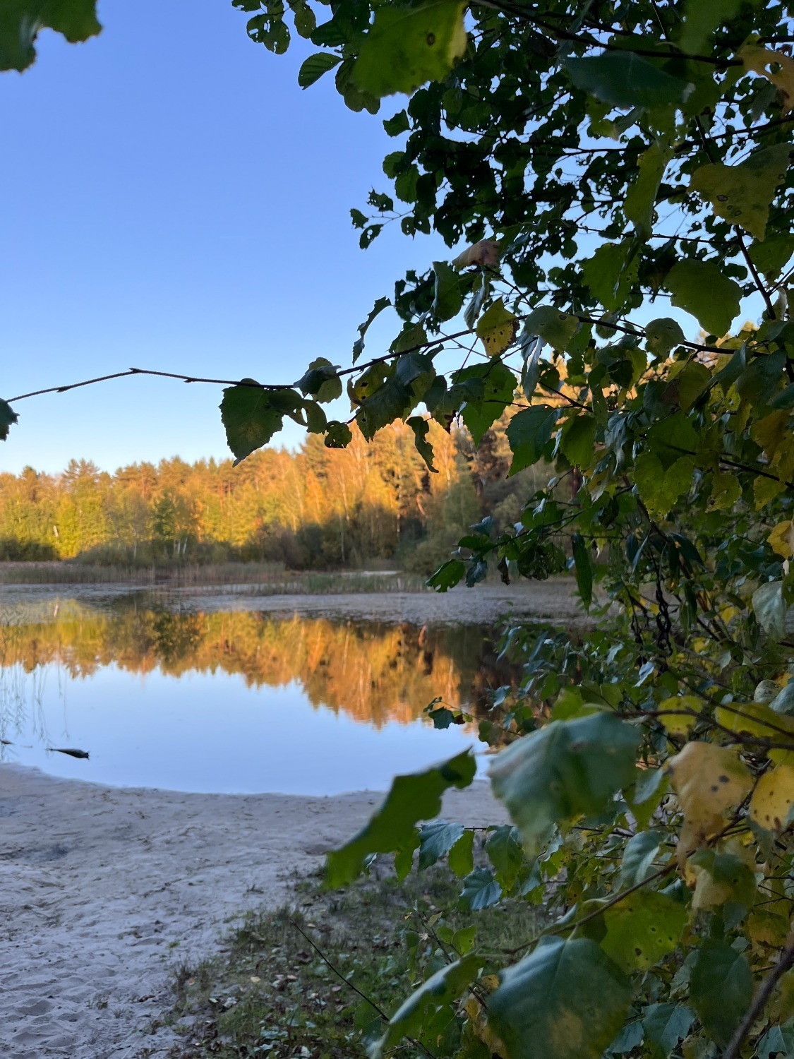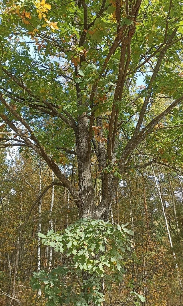 Ольга Пеньшина в октябре 2025 года запечатлела живописное дерево на фоне закатного солнца и жёлтый кленовый лист. На одном из снимков соседствуют ещё зелёные деревья и уже по-осеннему яркие.