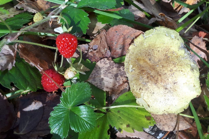 Наталии Служеникиной, известной любительнице тихой охоты, попались не только грибы, но и октябрьская земляника! Не прошла она и мимо живописной лесной дорожки, усыпанной опавшими листьями.