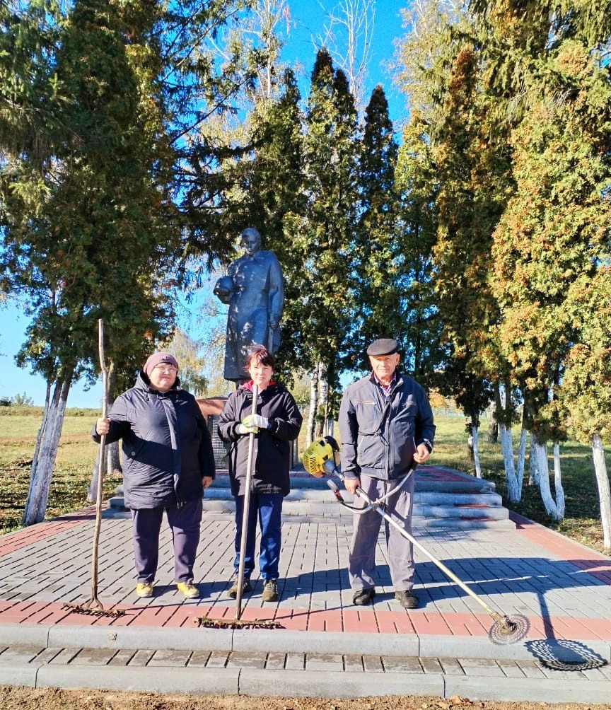 Так члены первичного отделения села Татарщино во главе с секретарём Валентиной Ендальцевой вышли на уборку территории памятника воинам-землякам, погибшим в годы войны 1941–1945 годов.