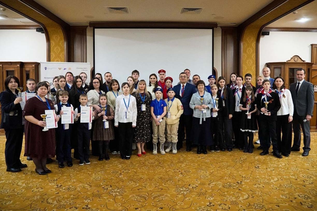 В торжественной обстановке заместитель министра просвещения РФ вручил вдове бойца Екатерине Кривенцевой, дочерям Ангелине и Софье, а также педагогу-организатору Екатерине Трофимовой почётные грамоты и ценные подарки.