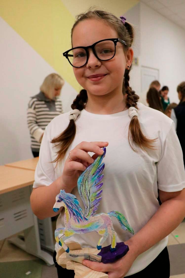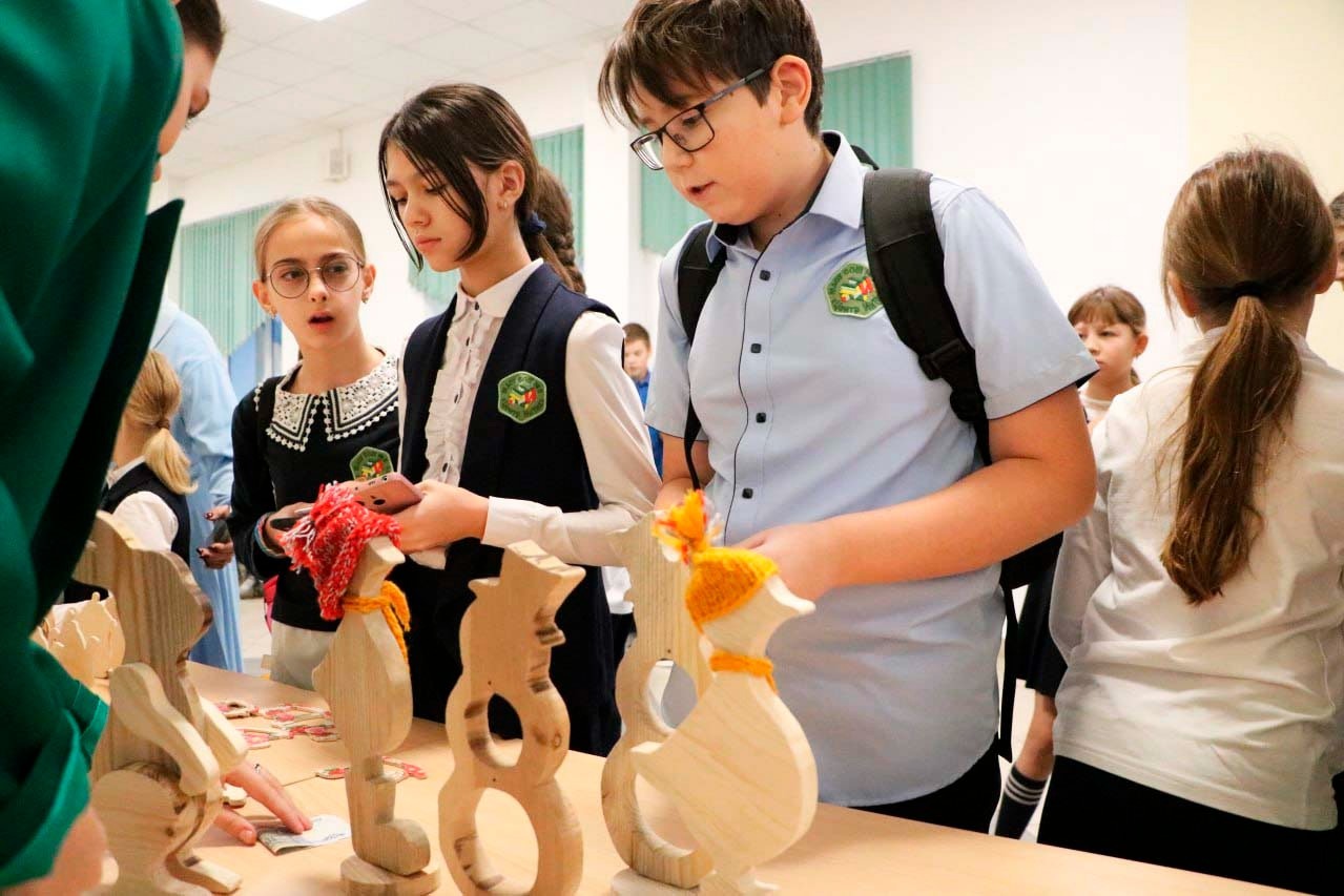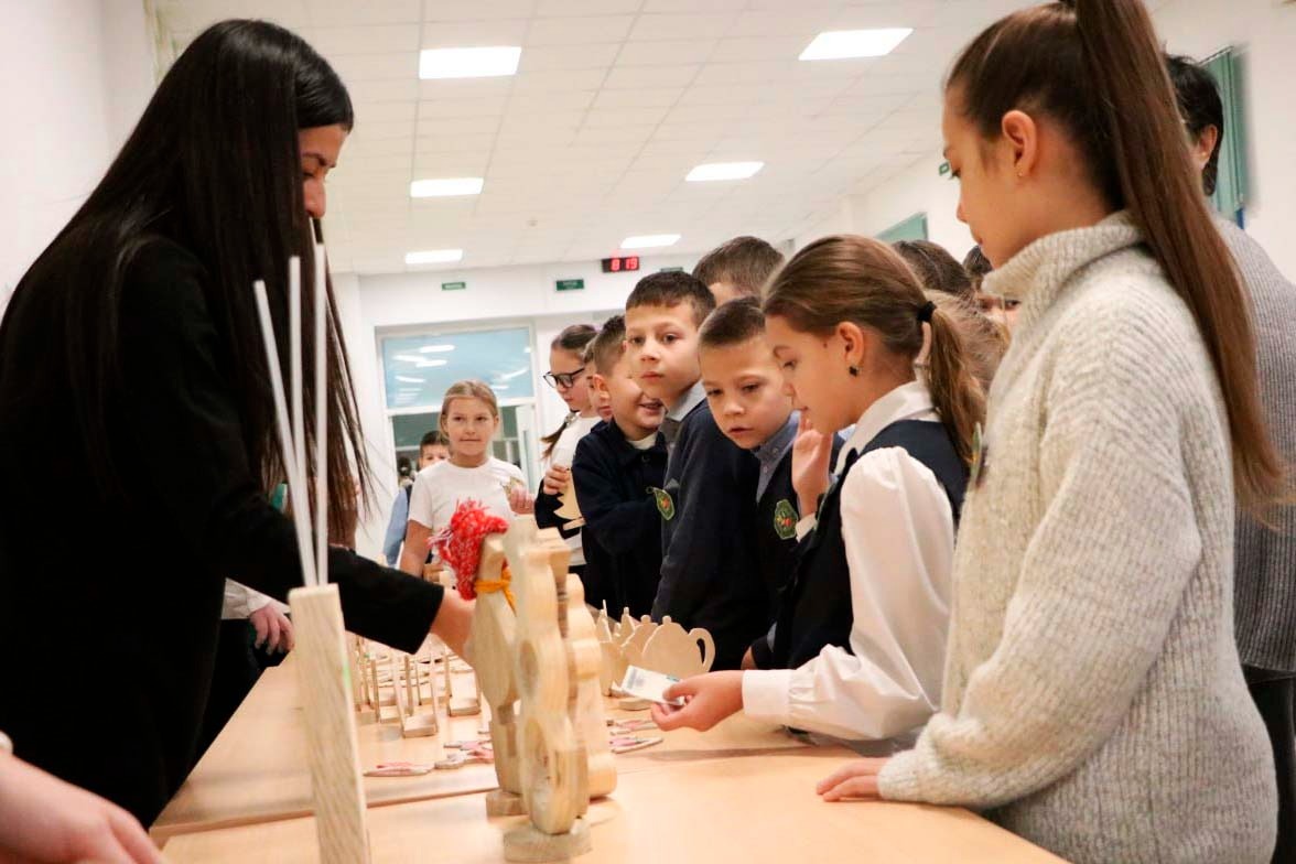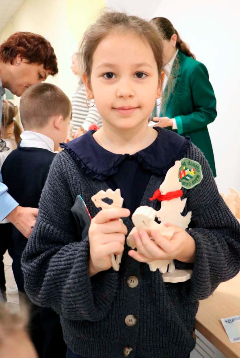 Вниманию посетителей представили результат кропотливой работы юных мастеров из кружка дополнительного образования «Столярно-плотницкие работы». Ученики под руководством Ирины Замотаевой изготовили различные изделия из дерева. Спросом пользовались и изящные разделочные доски, и экологичные деревянные игрушки, и кормушки для птиц. Каждая вещь сделана с душой и вниманием к деталям. Покупатели оценили по достоинству и приобретённые навыки юных мастеров, и их художественный вкус.