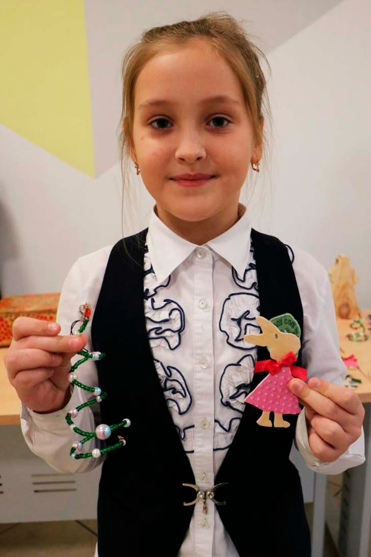 Новинкой ярмарки стали изделия из бисера, сделанные второклассниками под руководством учителя начальных классов Ольги Житеневой. Благодаря усидчивости и терпению, дети создали настоящую красоту. Новогодние ёлки вызвали особый восторг у посетителей.