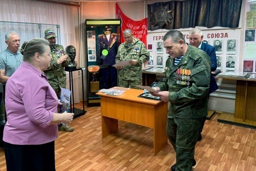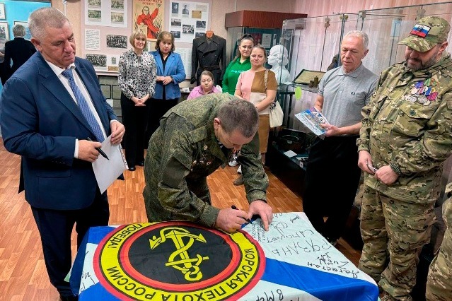 На мероприятии волонтёры передали от 810-й штурмовой бригады морской пехоты России в дар музею новые артефакты, которые пополнят выставку, посвящённую специальной военной операции, а также флаг, на котором все участники встречи оставили свои автографы.