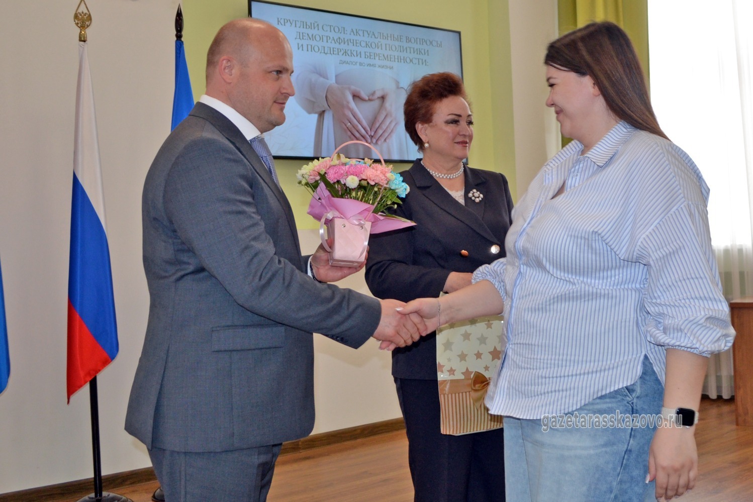 В администрацию муниципалитета пригласили главных виновниц торжества и тех, кто призван поддерживать ожидающих ребёнка: руководителей районной больницы, женской консультации и акушерского отделения, кадрового и центра соцуслуг, священнослужителей.