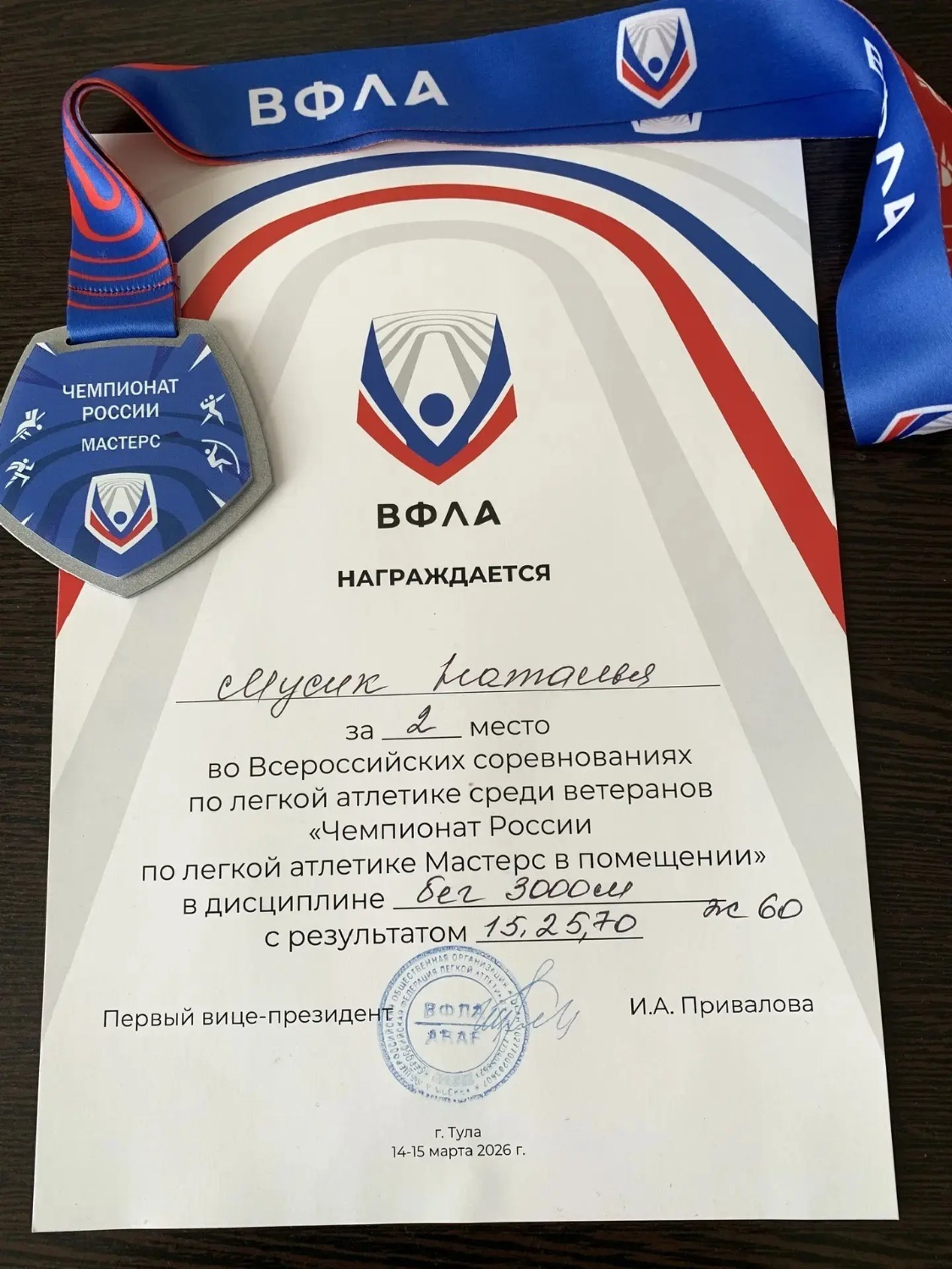 Настоящим спортивным триумфом для нашего города завершилось выступление рассказовской легкоатлетки Натальи Мусик на престижном «Чемпионате России по легкой атлетике Мастерс в помещении».